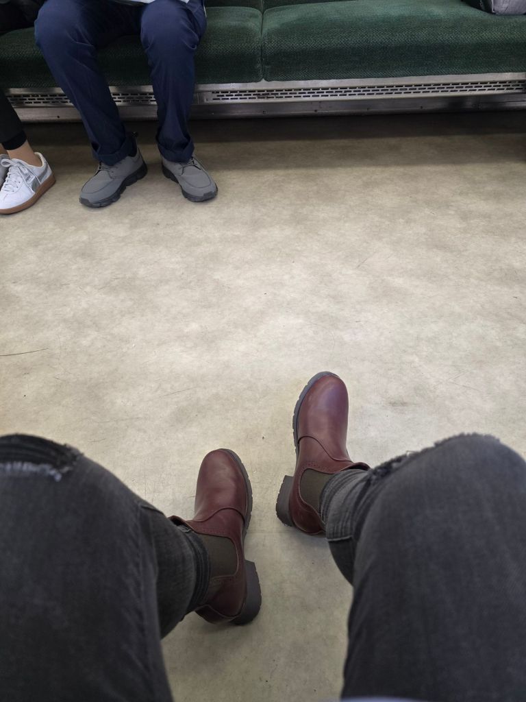 I finally settled on a pair of simple burgundy boots from the sale section. They cost around 4,000 yen (~$27 USD)—a steal for genuine leather boots. I also picked up a pair of shoes from their new collection, thinking it would be good to rotate between two pairs to give the insoles more time to recover.