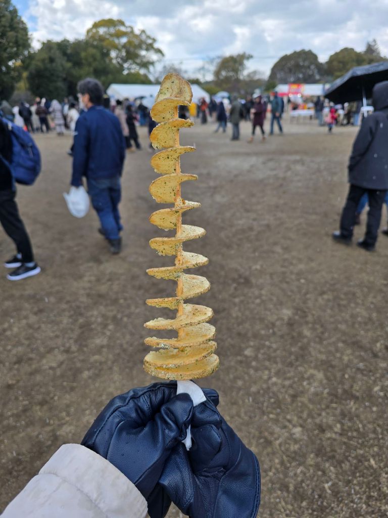 As I wandered through the park with my schoolmates and teachers, I indulged in various treats: a spiral potato, steamed clams, and some roasted chestnuts. The festive environment provided a delightful backdrop for our afternoon.