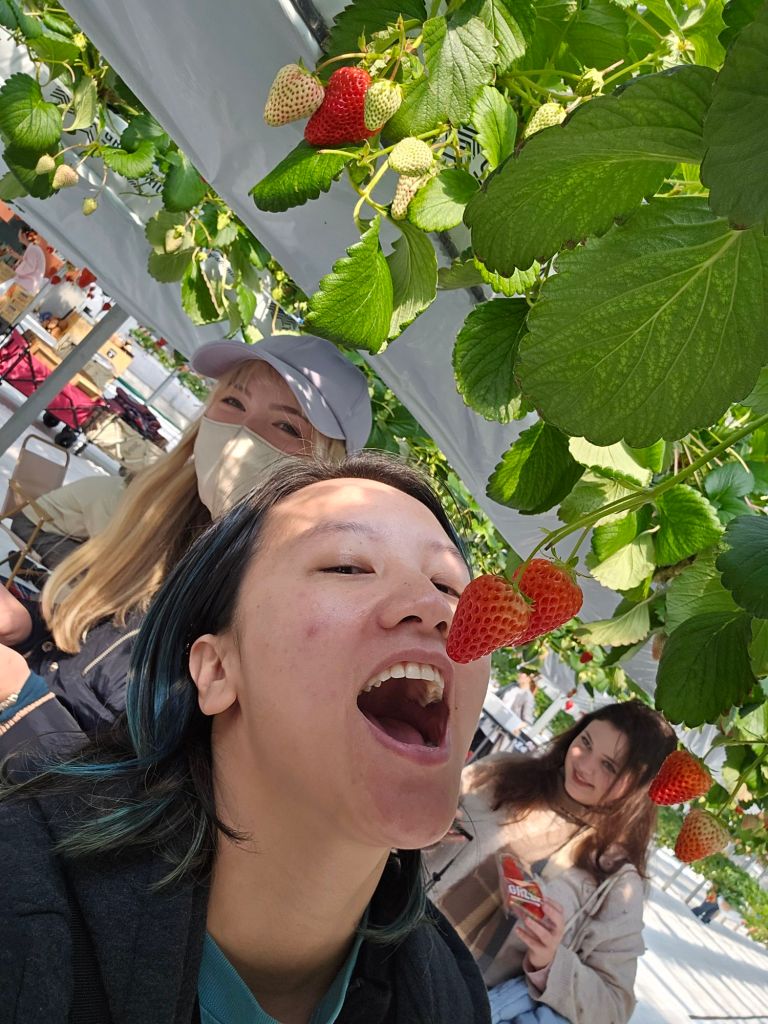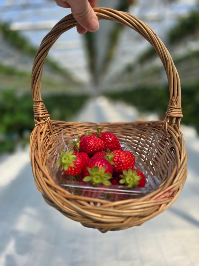 Today was filled with excitement. Our after-class activity was strawberry picking! Winter is peak strawberry season in Japan, which is why the classic Christmas cake in anime often features strawberries. February is an ideal month for strawberry picking, as the fields are abundant with perfectly ripe berries.