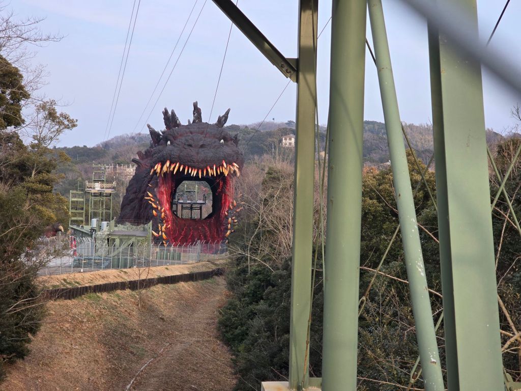 Following our time at the greenhouse, we set out to explore more of Awaji Island. One of the students, a Godzilla enthusiast, suggested visiting a nearby park featuring a large Godzilla structure. To our surprise, it was a zipline attraction! While part of me wanted to try it, I was also hoping to visit an onsen on the island, so I decided to pass this time. Unfortunately, the zipline’s schedule and the time it took to organize meant I missed both the zipline and the onsen. However, I plan to return when I have the campervan to experience both, as well as a ropes course I spotted in the distance!