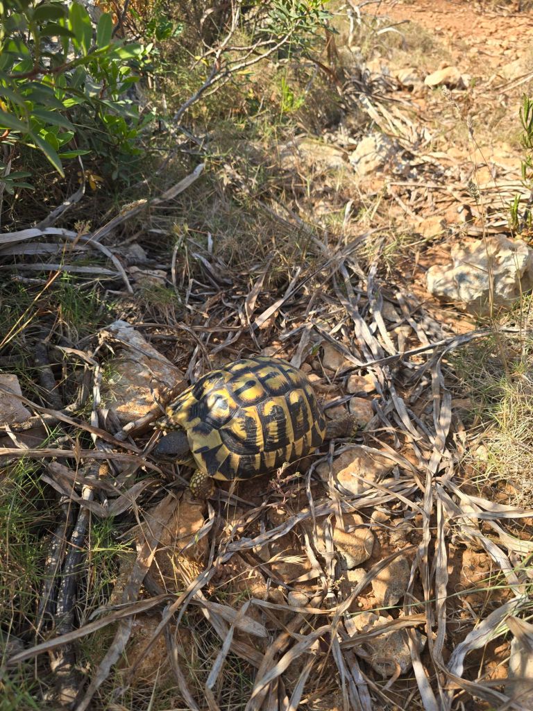 I used my new confidence to meet up with strangers off Facebook. we headed to Cala Varques. The hour-long hike warmed us up, and we even spotted tortoises and goats along the trail. At the cliff, we started with a long traverse just above the water. Some of the crew started working a 7a—I was intimidated by the height and probable fall, but their encouragement got me to try. I fell more than once, and the final drop was scary and painful, but it felt thrilling to challenge my fear and push a bit farther. It especially felt cool to be so high up making cool moves.